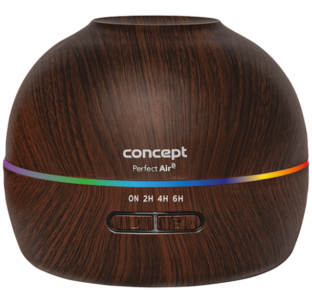 Zvlhčovač vzduchu s aróma difuzérom 2 v 1 Concept ZV1006 Perfect Air nastaví vo vašej domácnosti ideálne prostredie pre zdravé dýchanie. Je vhodný do miestností s veľkosťou až 20 m2 a ponúka 2 režimy s maximálnym výkonom 40 ml/h. Disponuje zásobníkom na vodu s objemom 300 ml, ktorý dokáže vytvárať jemnú paru po dobu až 12 h. Vyniká moderným dizajnom tmavého dreva a veľmi tichou prevádzkou. Počas nočnej prevádzky určite oceníte možnosť nastavenia časovača, ktorý prístroj automaticky vypne po 2, 4 alebo 6 hodinách. Zvlhčovač je ideálnou prvou pomocou, pretože dokáže zvýšiť vlhkosť v miestnosti a docieliť zdravšieho prostredia.