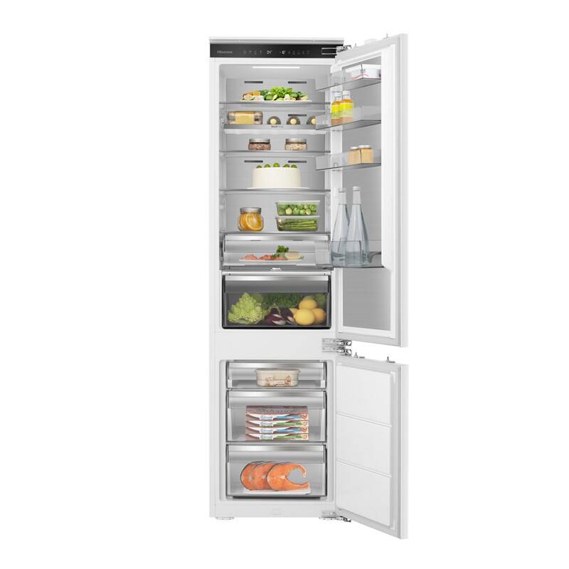 Želáte si, aby nová chladnička splynula s vašou kuchyňou? V tom prípade by vás mohla zaujať vstavaná chladnička Hisense RB5B280SSWC. Tento model sa pýši tichým a úsporným chodom. Zariadenie disponuje celkovým objemom 284 litrov, čo poskytuje dostatok miesta na uloženie potravín aj pre viacčlennú rodinu. Vnútorný priestor sa delí na mraziace (76 l) a chladiace (208) oddelenie. O optimálnu cirkuláciu vzduchu v celom priestore chladničky sa stará systém Multiflow 360°. Kombinovaná chladnička Hisense je vybavená praktickou beznámrazovou technológiou Total NoFrost, vďaka ktorej zabudnete na starosti spojené s ručným odmrazovaním. Okrem toho je spotrebič vybavený funkciou SuperCool na veľmi rýchle schladenie novo uložených potravín. Vďaka vstavanej Wi-Fi a mobilnej aplikácii ConnectLife je možné chladničku ovládať či kontrolovať odkiaľkoľvek.