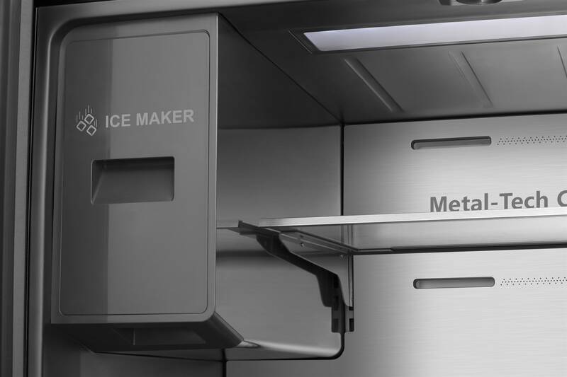 americká chladnička • výška 178,5 cm • objem chladničky 352 l / mrazničky 188 l • energetická trieda E • 10 rokov záruka na kompresor • systém cirkulácie vzduchu Multiflow 360° • beznámrazový systém NoFrost Plus • rýchle chladenie s funkciou SuperCool • Smart funkcie • prázdninový režim • ConvertZone – možnosť zmeniť mrazničku na chladničku • LED displej • hlučnosť 37 dB • V × Š × H: 178,5 × 91,4 × 72,5 cm