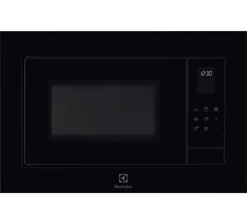 Vstavaná mikrovlnná rúra Electrolux 600 FLEX Grill LMS4253TMK v čiernom prevedení ponúka 8 úrovní mikrovlnného výkonu. Rýchlo a jednoducho ohreje, uvarí, ugriluje alebo rozmrazí pokrmy. Maximálny mikrovlnný výkon dosahuje 900 W a výkon grilu 1000 W. Automatický program nastaví správny výkon pre dokonalé výsledky. K dispozícii sú automatické rozmrazovacie programy, ktoré podľa možnosti potravín nastavia potrebné parametre. Vnútorný priestor je nerezový, nachádza sa v ňom sklenený otočný tanier v priemere 27 cm. Vstavaná mikrovlnná rúra Electrolux 600 FLEX Grill LMS4253TMK je ovládaná elektronicky pomocou otočného voliča a dotykového LED displeja. Dvierka sa otvárajú stlačením tlačidla.