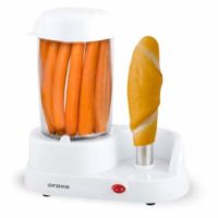 S hotdogovačom Orava HM-01 si rýchlo a jednoducho pripravíte obľúbené hotdogy. Zariadenie obsahuje varnú nádobu s nepriľnavým povrchom, v ktorej je miesto pre 6 párkov. Párky sú ohrievané v horúcej pare. Vertikálny nástrčný tŕň z nehrdzavejúcej ocele slúži na ohrievanie pečiva. Hotdogovač má jednoduchú obsluhu pomocou 1 tlačítka a nechýba tepelná poistka. Príkon: 365 W.